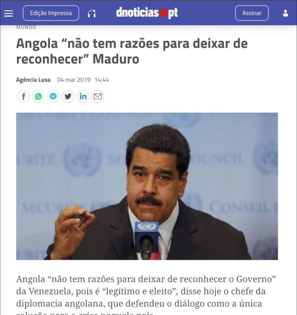 Entre os documentos divulgados consta uma notícia publicada a 4 de março de 2019 pelo portal português DN Notícias, com base na Agência Lusa, onde se refere que Angola “não tem razões para deixar de reconhecer” Nicolás Maduro, por considerar o seu Governo “legítimo e eleito”.